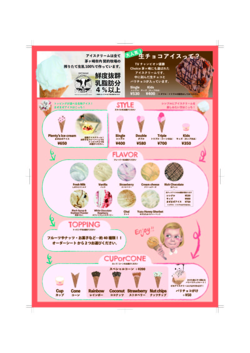 Plenty’s 茅ヶ崎本店は、湘南茅ヶ崎のアイスクリーム屋さんです。茅ヶ崎産生乳100%使用のアイスとトッピングを「まぜまぜ」するプレンティーズアイスは、地元住民から観光客まで幅広く愛されています。手焼きワッフルも大変人気です。